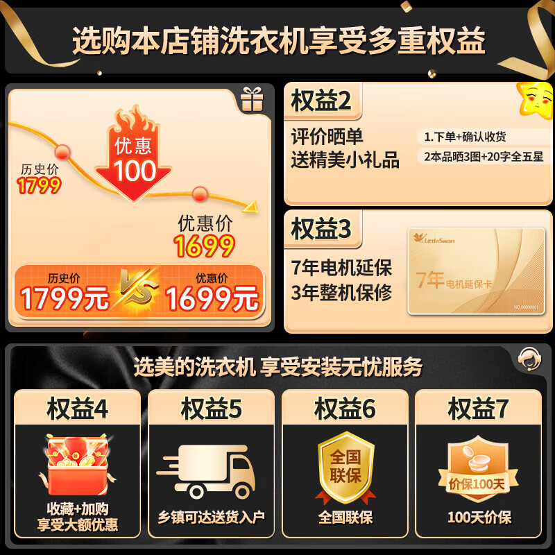 3、洗衣机很好用,很智能,噪音小,功能齐全,一直用小天鹅品牌的洗衣机,之前那个用了10几年才换的这个,性价比很高??