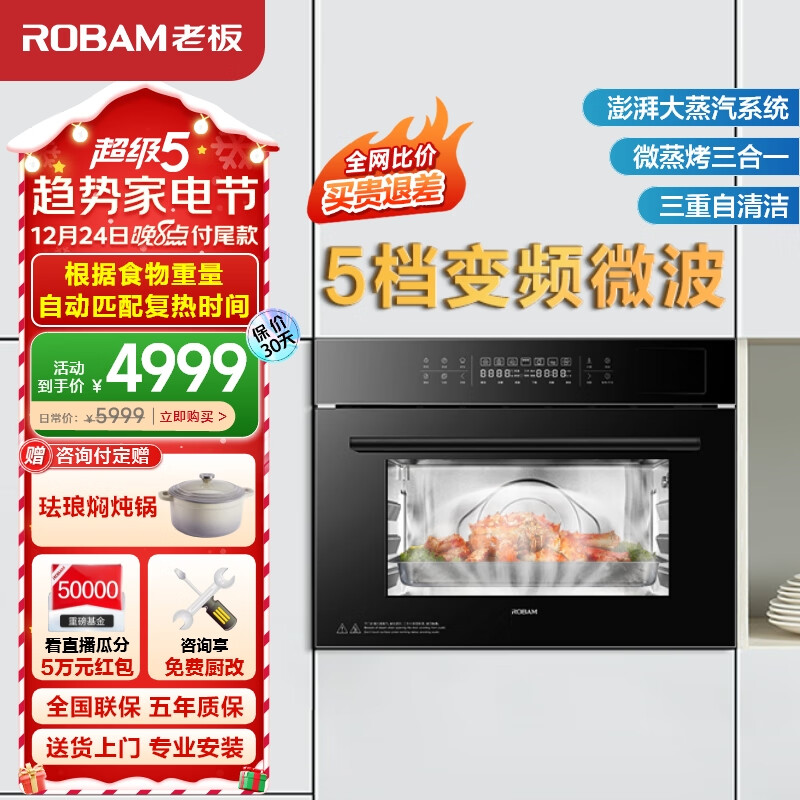 老板(Robam)微蒸烤箱一体机嵌入式5档变频微波家用多功能微波炉蒸箱烤箱3合1一体机CQ979价格:4999.00元!