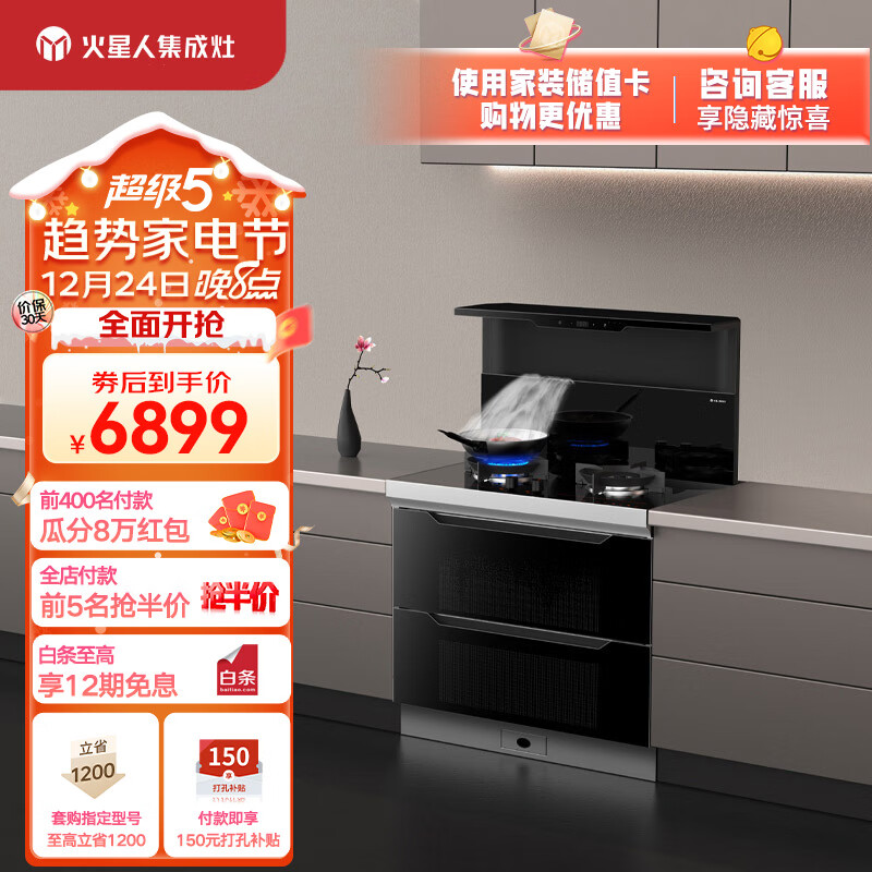 火星人集成灶T30BX集成灶消毒柜一体 侧吸式 天然气价格:7199.00元!