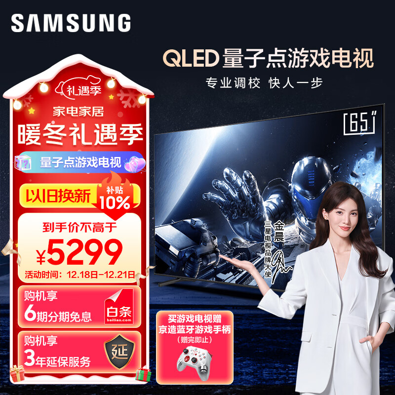 三星(SAMSUNG)65QX3C 65英寸 QLED量子点 专业游戏电视 无开机广告 超薄4K 120Hz HDMI2.1 QA65QX3CAJXXZ价格:5299.00元!