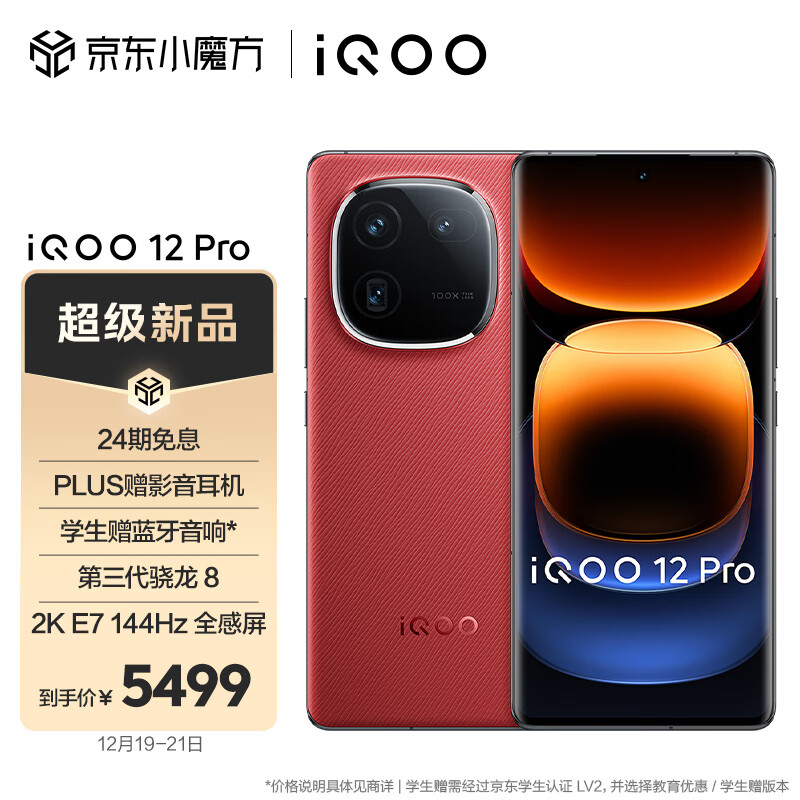 vivo iQOO 12Pro 16GB+512GB燃途版 2K E7 144Hz屏幕 大底主摄潜望式长焦 第三代骁龙 8 自研电竞芯片Q1 手机价格:5499.00元!