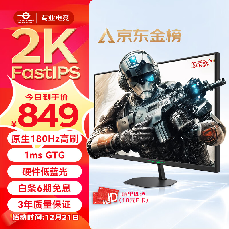 泰坦军团 27英寸 2K 原生180Hz FastIPS快速液晶 广色域显示屏 1ms 电竞显示器 窄边框电脑办公游戏屏 P27H2R价格:849.00元!