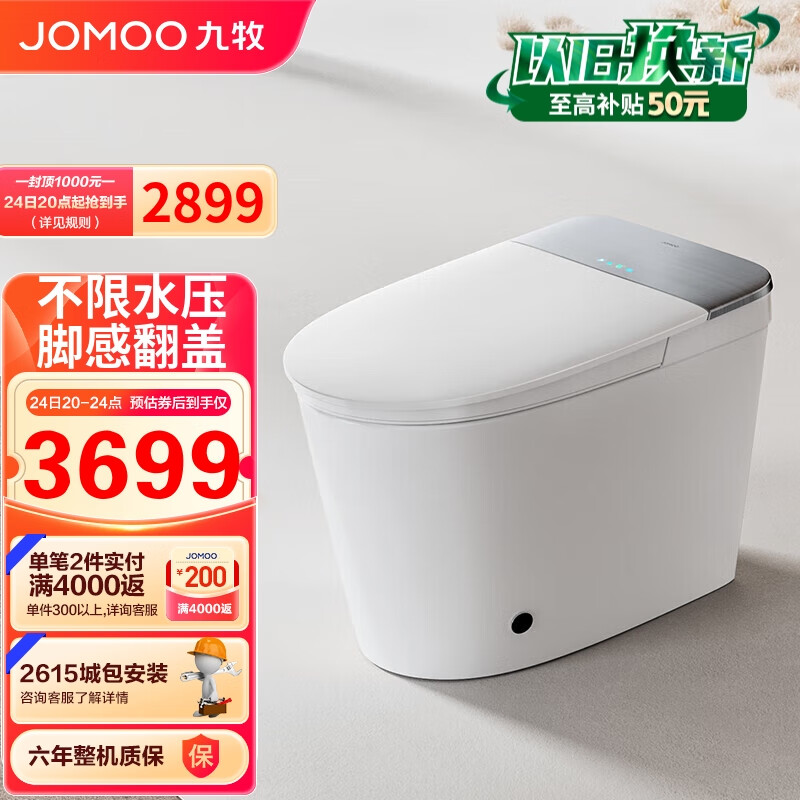 九牧(JOMOO)无水压限制智能马桶一体机节水自动翻盖智能坐便器ZS700I 400坑距价格:4649.00元!