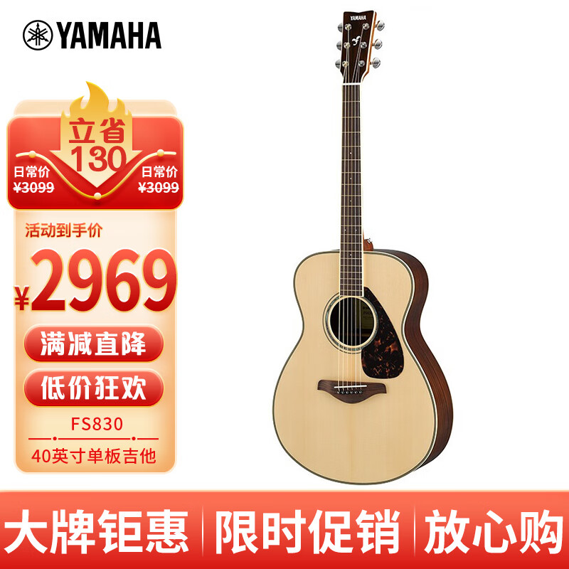 雅马哈(YAMAHA)FS830 原声款 实木单板 初学者民谣吉他40英寸吉它亮光原木色价格:3099.00元!