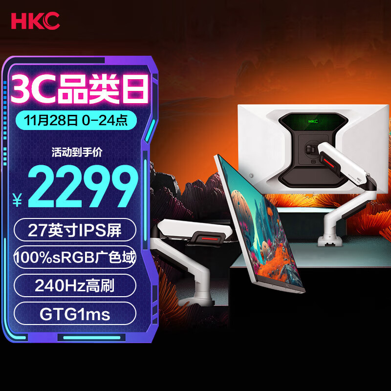 HKC 27Ӣ?? 2K FastIPS?? 240Hz??ˢ 1MS??????Ӧ HDR400??ת???? խ?߿? ?羺??Ϸ???ɵ??? ??ʾ?? XG276QK?۸???2899.00Ԫ??