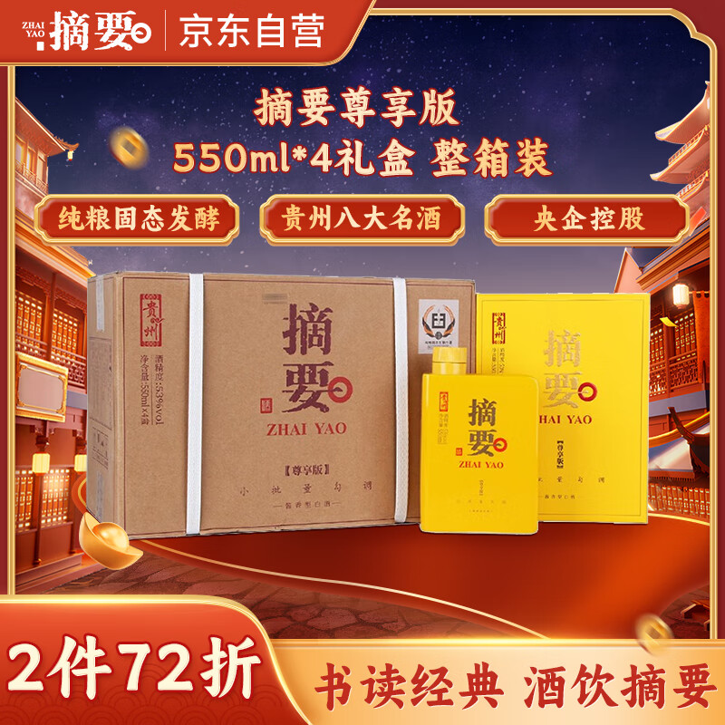 金沙摘要 尊享版 高端酱香型53度白酒 收藏宴请550ml*4 整箱装价格:4722.00元!