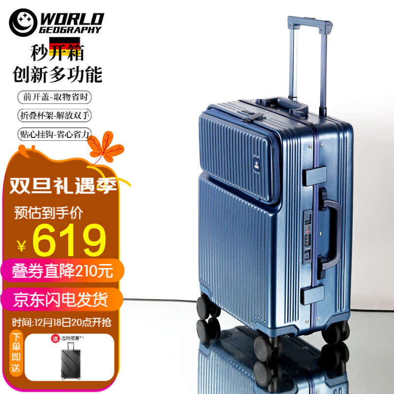 地理德国前开盖行李箱男女铝框拉杆箱密码旅行箱24英寸托运箱 星河蓝价格:829.00元!