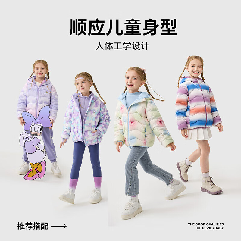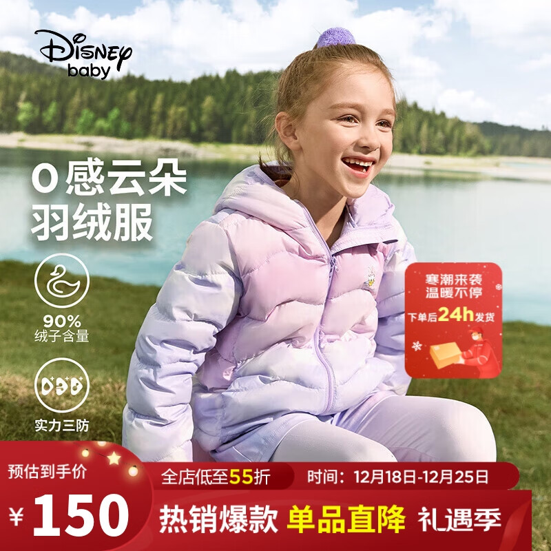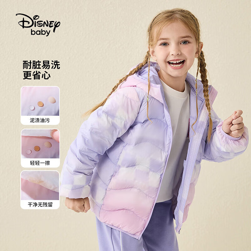 迪士尼(DISNEY)儿童装女童轻薄三防连帽羽绒服白鸭绒外套23冬DB341KE25紫120价格:279.90元!