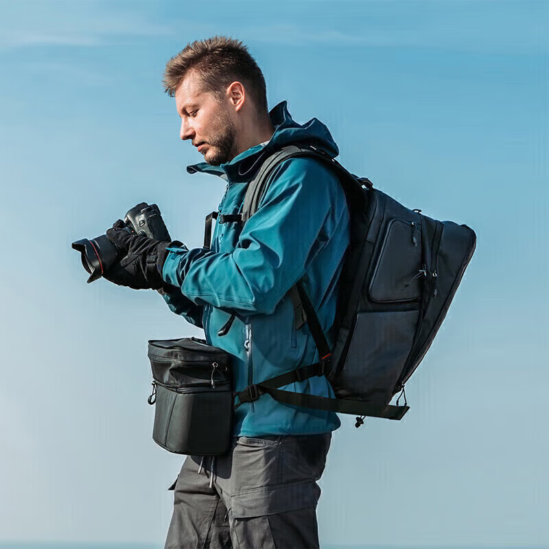 4、包做工可以,用料也可以,收到后比预想的要大,装了2s套装,索尼A7c+24105,佳能760d+501.8+18-135,索尼DV405,尼康aw120s,移动硬盘,15.6笔记本,三脚架挂边上,拓展空间还装下了如影SC,空间还有剩余。真能装!!背负感挺好的,临时轻便出行拍摄可以用子包!挺满意的,当然,贵是贵了点!