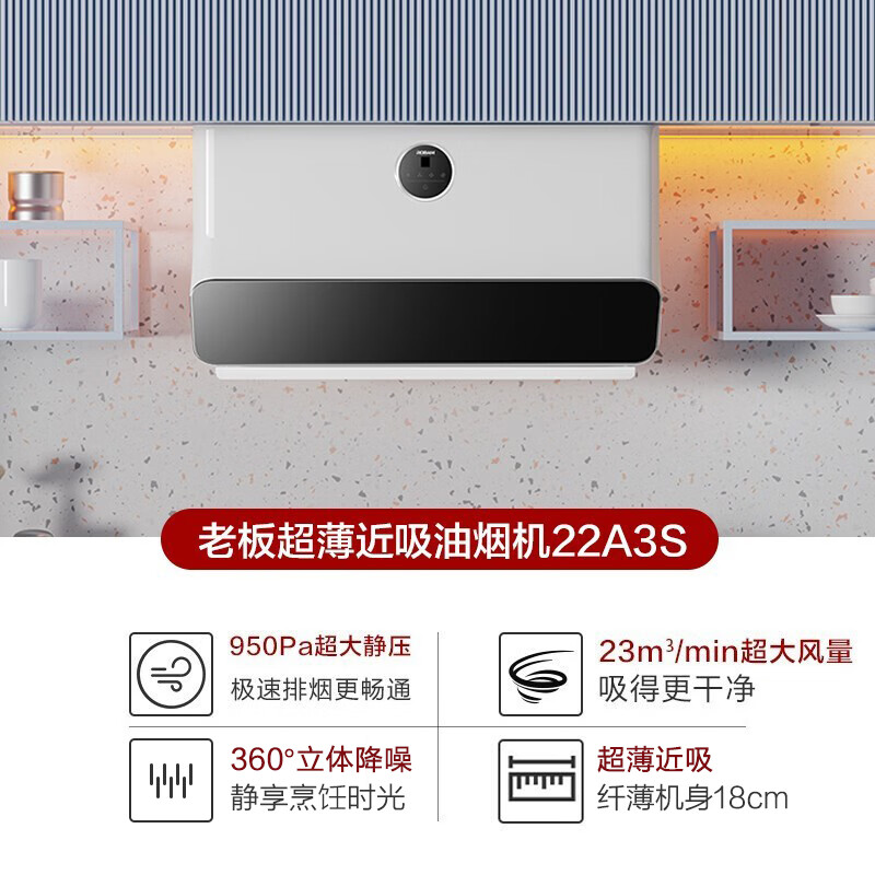老板(Robam)抽油烟机A3S白色超薄近吸烟机80cm小尺寸23风量家用变频灶具燃气灶烟灶套装22A3S+57B2DT(天然气)价格:4999.00元!