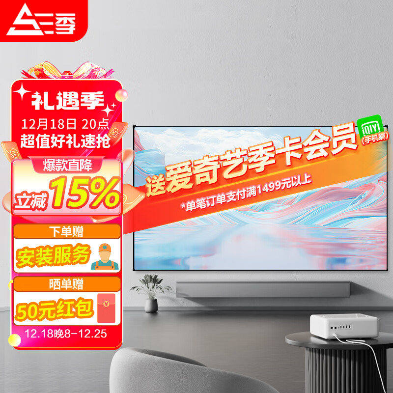 三季菲涅尔抗光幕布120英寸16:9中长焦超清8K画框软幕客厅壁挂投影仪3D屏幕 适配爱普生明基极米等投影仪FRZ价格:4499.00元!