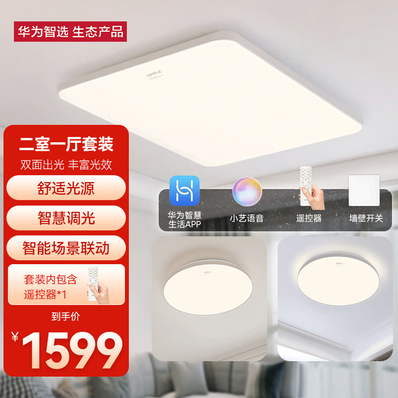 华为智选 欧普吸顶灯【 两室一厅套餐】128w客厅灯+48w卧室灯+24w卧室灯价格:1699.00元!