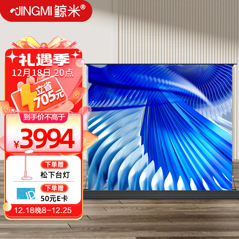 鲸米(JINGMI)电动地升幕布地拉幕120英寸纳米4K白软拉线投影幕布G6pro智能遥控联动家用投影机屏幕黑壳价格:4699.00元!