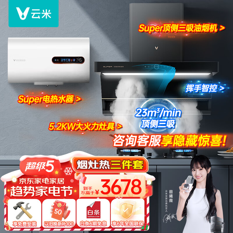 云米(VIOMI)super 油烟机CXW-300-VK715+super 5.2kw猛火灶JZT-VG507+电热SuperVEW6022套装价格:3678.00元!