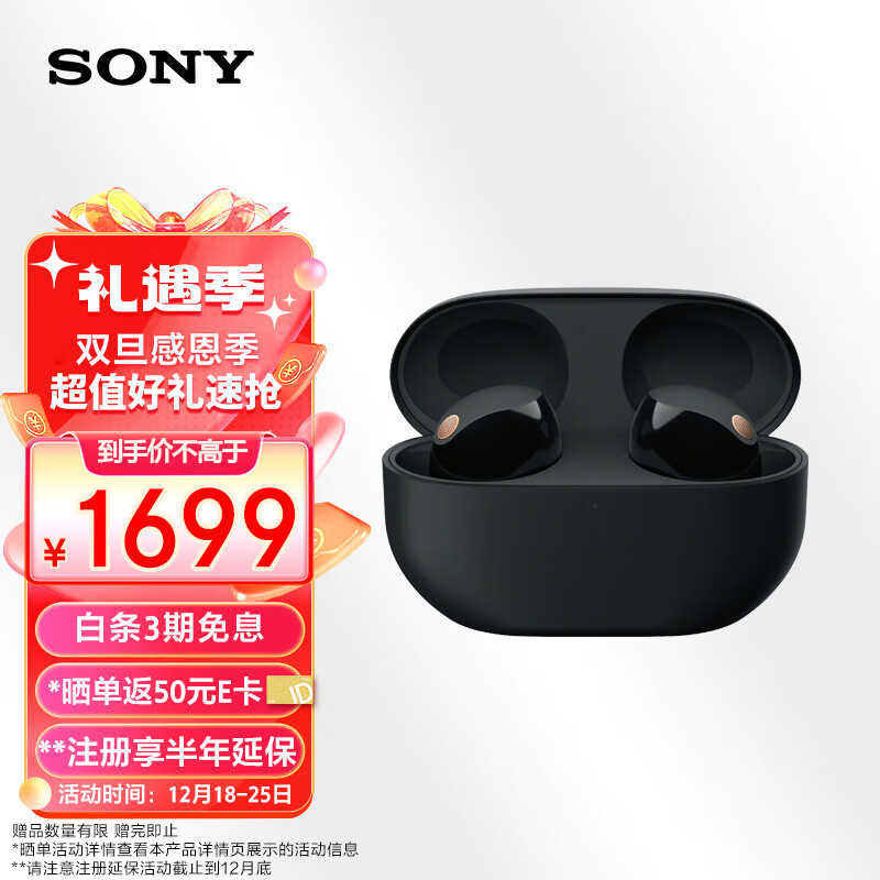 索尼(SONY)WF-1000XM5 真无线蓝牙降噪耳机 新一代降噪豆 智能AI 蓝牙5.3 黑色价格:1799.00元!