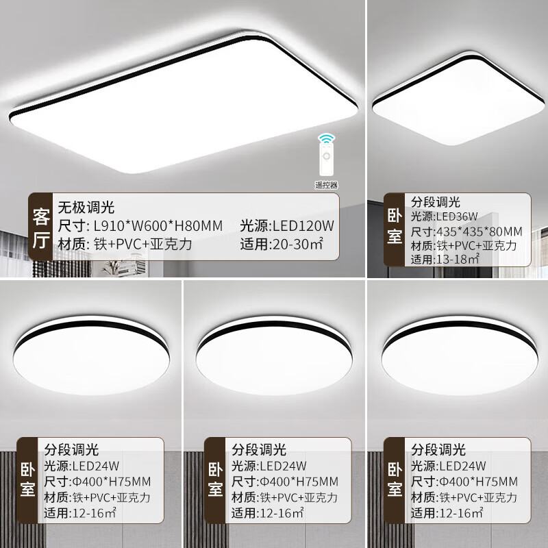雷士照明(NVC)LED吸顶灯大灯北欧风现代简约超薄灯饰灯具客厅无极调光三室两厅价格:1299.00元!