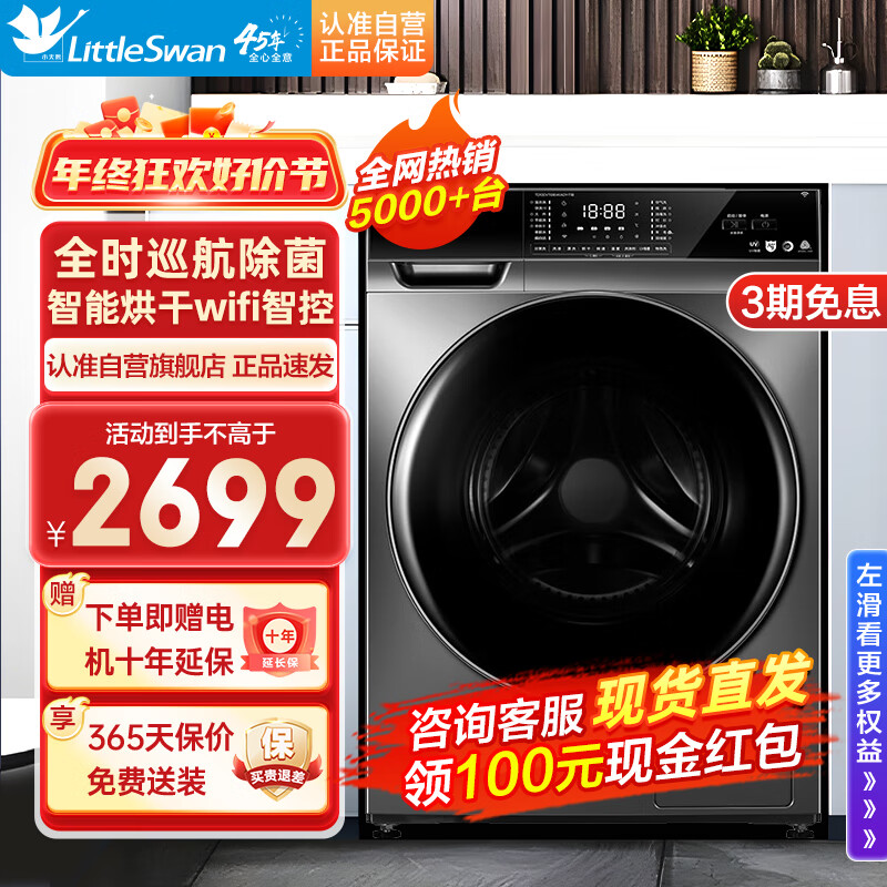 小天鹅(LittleSwan)滚筒洗衣机全自动 洗衣机烘干机一体机 洗烘一体 智能投放双重除菌 10公斤 TD100VT616WIADY-T1B价格:2799.00元!