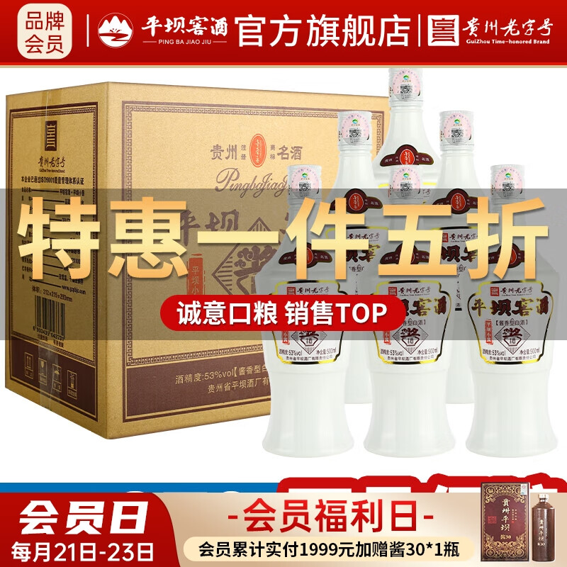 平坝窖酒小酱酱香型白酒53度高度白酒整箱粮食酒高粱酒贵州老字号送礼 53度 500mL 6瓶 平坝小酱整箱价格:558.00元!