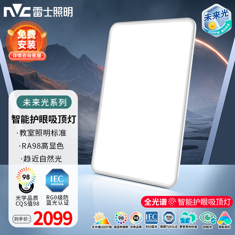 雷士(NVC)LED吸顶灯 现代简约客厅卧室灯具智控Ra98护眼全光谱灯饰未来光F价格:2099.00元!