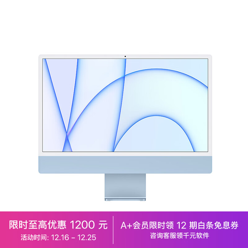Apple iMac 24英寸 蓝色 4.5K屏 八核M1芯片(8核图形处理器) 16G 512G SSD 一体式电脑主机【定制机】Z12X价格:14499.00元!