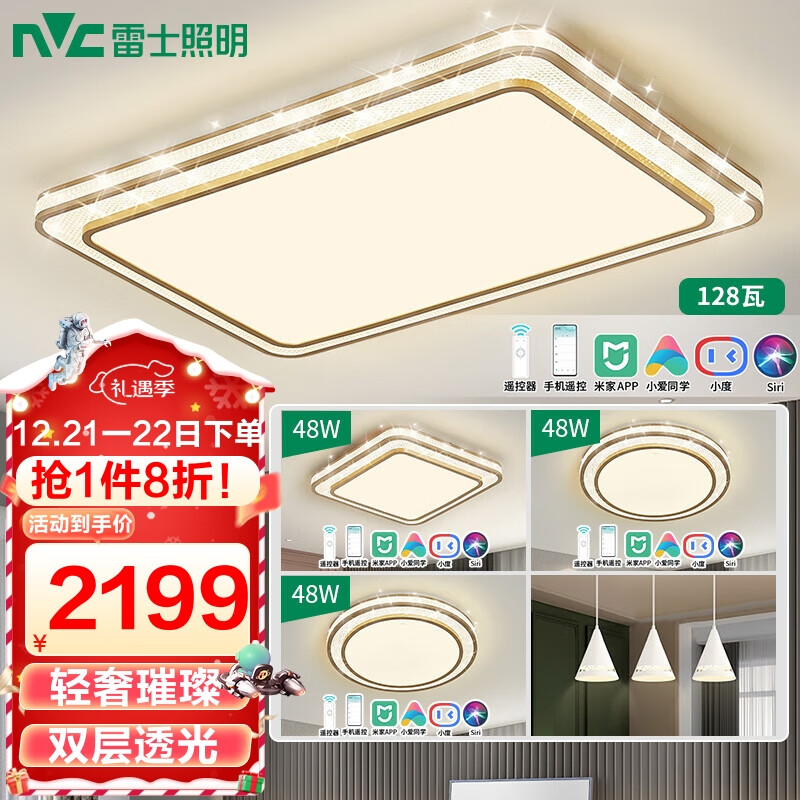 雷士(NVC)LED吸顶灯轻奢高级客厅书房卧室餐厅灯具语音调光仿水晶灯饰晶宏H价格:2748.00元!