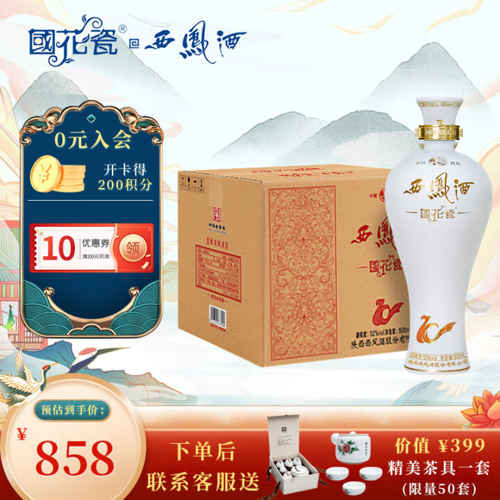 西凤酒 国花瓷 凤香型白酒10年纪念版52度白酒整箱装【聚会自饮】价格:858.00元!