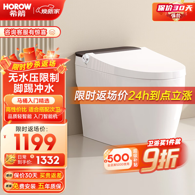 希箭(HOROW)智能马桶S15-L无水压限制虹吸马桶坐便器CZNT159106【400坑距】价格:1332.00元!