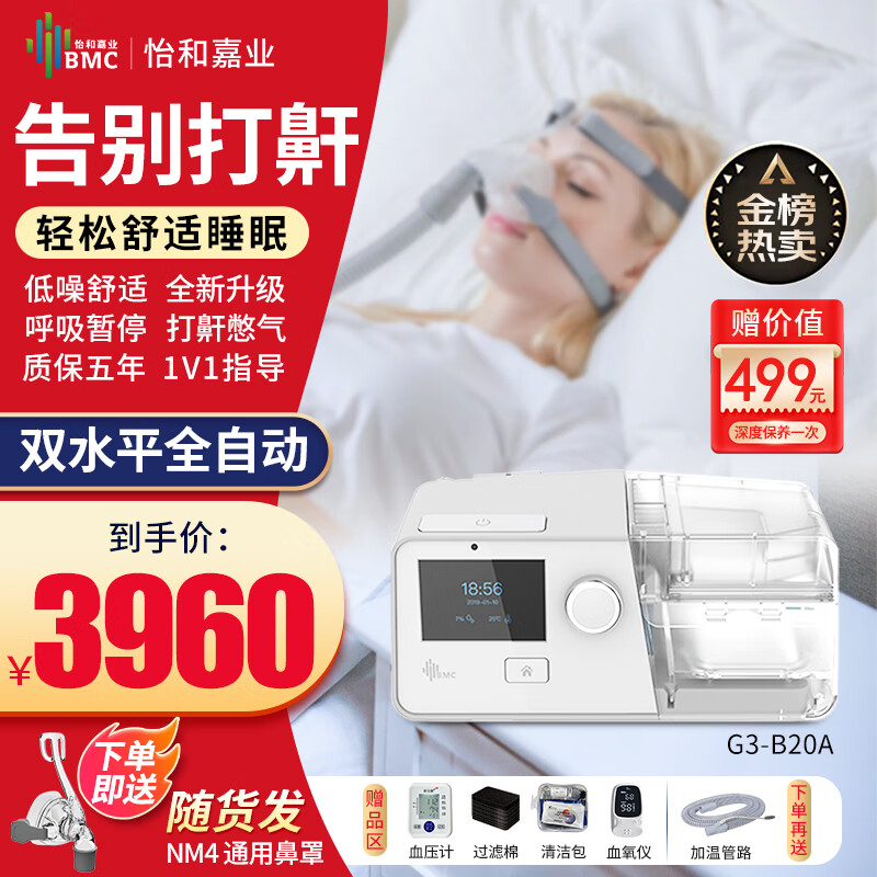 瑞迈特(怡和嘉业)G3 B20A双水平全自动家用医用呼吸机无创便携打呼噜憋气睡眠止鼾器呼吸暂停打鼾鼾症机价格:5650.00元!
