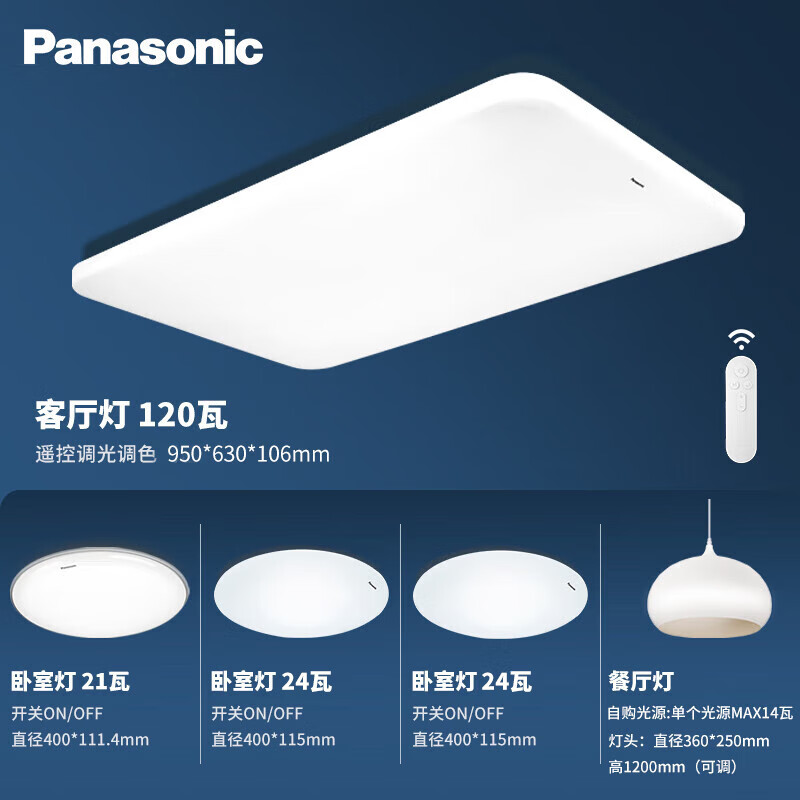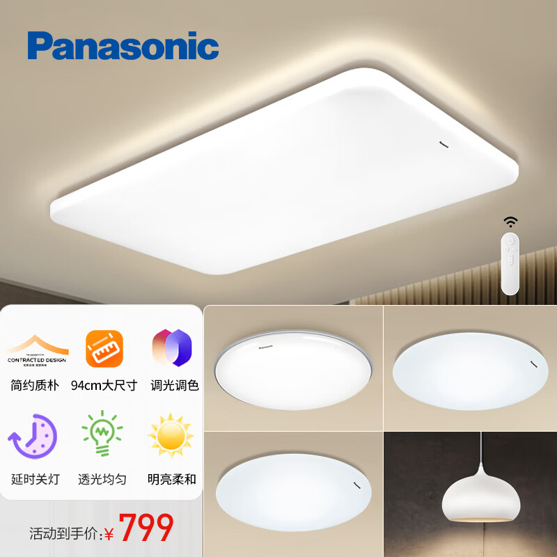 松下(Panasonic)客厅灯吸顶灯现代简约遥控调光调色灯具 三室二厅价格:999.00元!