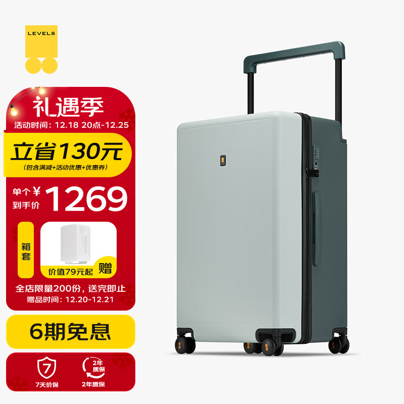 地平线8号(LEVEL8)行李箱男女密码拉杆箱 大旅行家大容量26英寸宽拉杆PC箱 抹茶撞色价格:1399.00元!