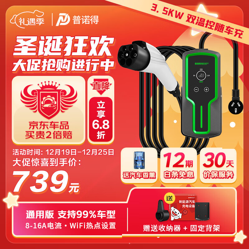普诺得新能源电动汽车随车充电器 16A3.5KW便携式充电桩 特斯拉家用枪线价格:739.00元!