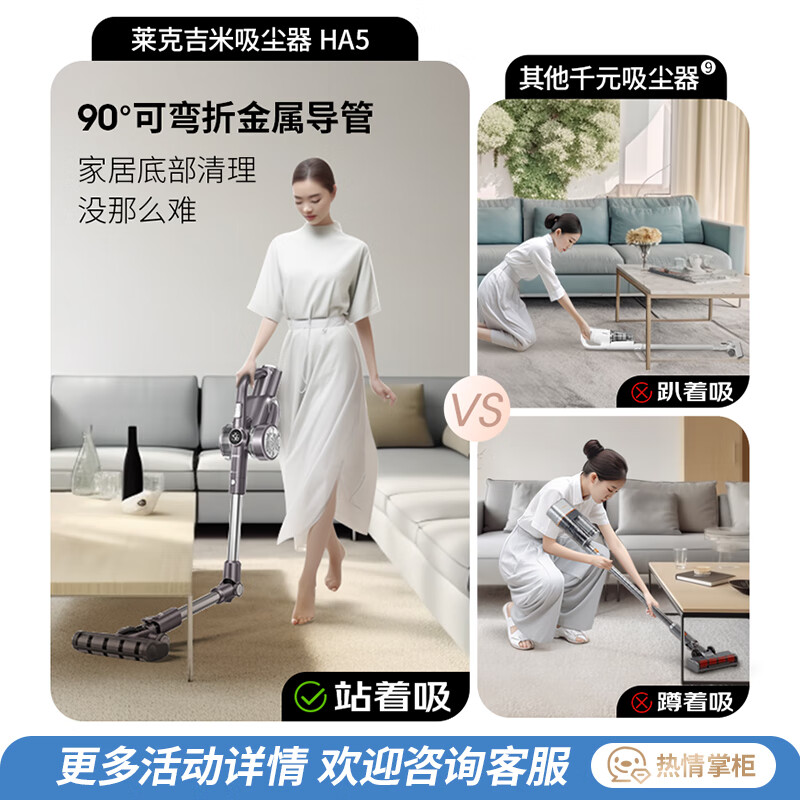 莱克吉米无线吸尘器HA5家用智能轻便手持大吸力除螨车载吸宠物毛一体吸尘器HA5极地灰价格:979.00元!