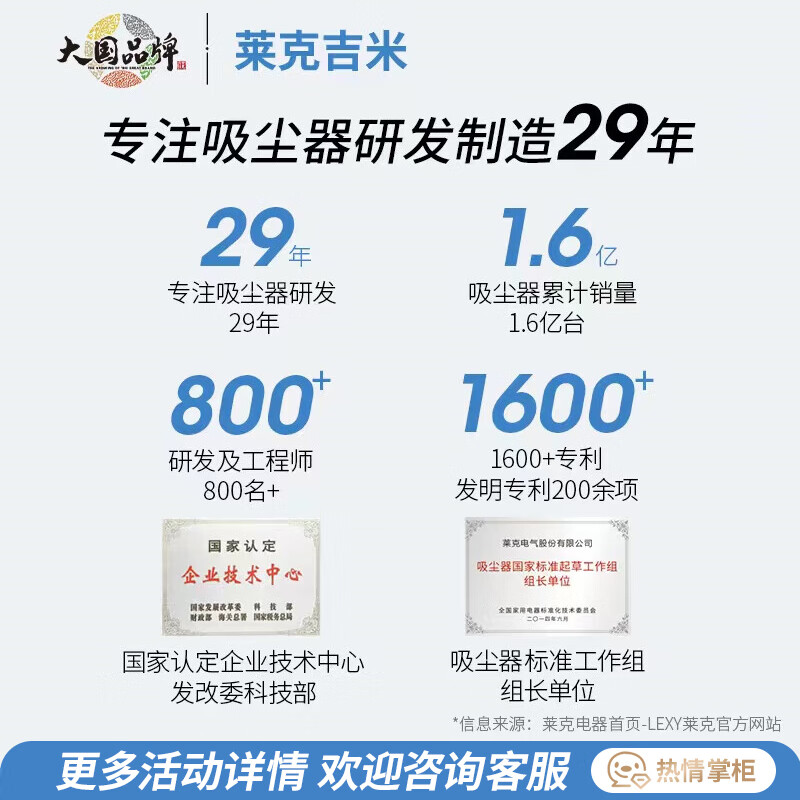 4、物流给力,第二天就收到了,收到就试用了,很轻巧,灵便,一点也不累,外观也好看,吸力很大,吸的干净,收纳也方便,除尘效果不错,用电也快,噪音在承受之内,客服很有耐心,一一的给我介绍对比,相信莱克