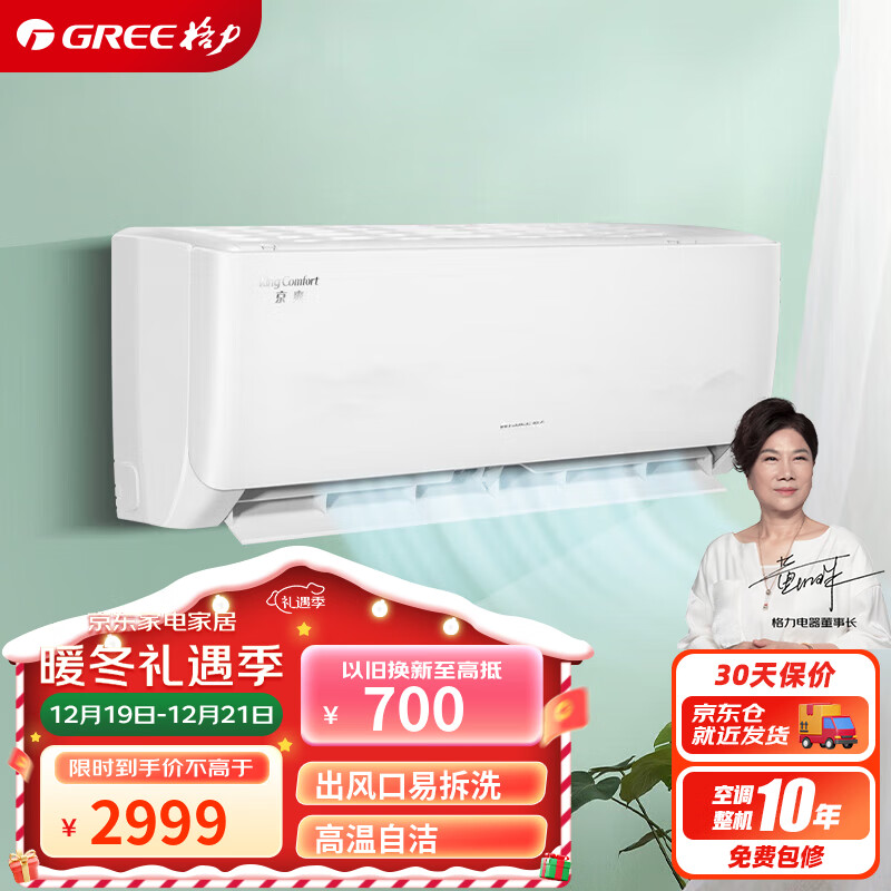 格力(GREE)1匹 京爽 新一级能效 变频冷暖 高温自清洁 壁挂式空调挂机 KFR-26GW/(26587)FNhAe-B1价格:2999.00元!