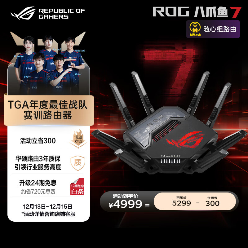 华硕(ASUS)ROG八爪鱼7电竞路由器|双万兆口+四个2.5G口|三频万兆路由器| 4核2.6G战芯|4K QAM价格:5299.00元!