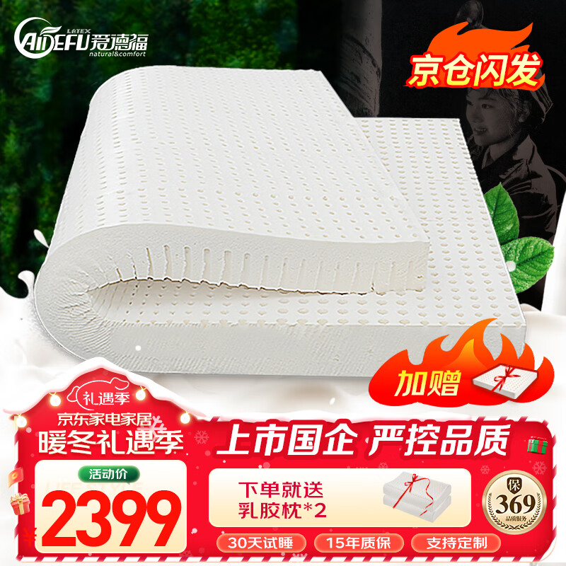 爱德福乳胶床垫泰国进口天然乳胶 榻榻米1.8m单双人180*200*15(95D)价格:2849.00元!