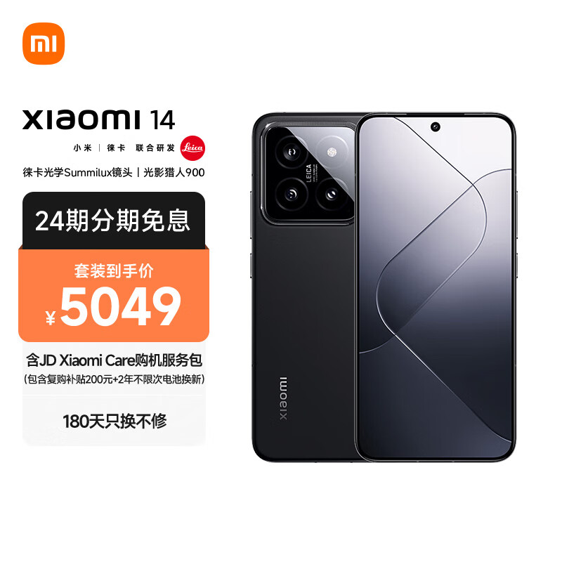 小米14 徕卡光学镜头 光影猎人900 徕卡75mm浮动长焦 骁龙8Gen3 16+1T 黑色 小米手机[MI Care套装版]价格:5049.00元!
