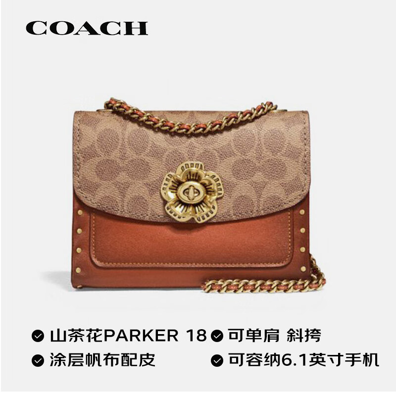 蔻驰(COACH)女士专柜款PARKER18号山茶花小号单肩斜挎包链条包拼色30592B4RU价格:1999.00元!