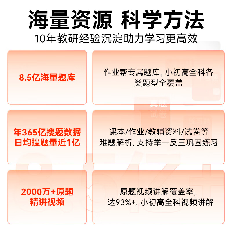 5、功能非常强大.价格也不贵.9大科目都能学习.非常方便.小学到高中的学习资料.免费使用.遇到不会的题目.一扫就能出解题思路.还有作业帮名师讲解视频.对孩子的学习非常有帮助.