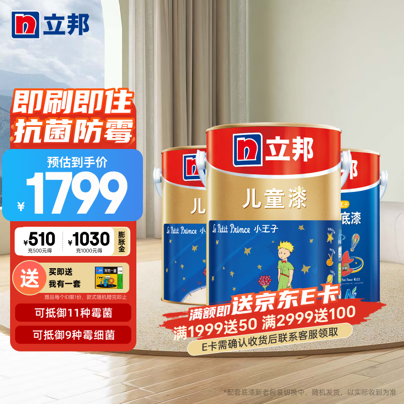 立邦儿童漆内墙乳胶漆墙面漆白漆净味防霉白色墙漆小王子儿童漆15L价格:2149.00元!