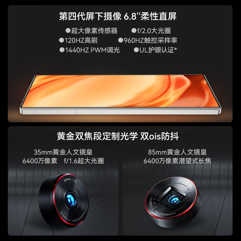 4、这颜值和性能,爱了爱了,冲着以下点买的:镜头及其布局+屏下摄像头+方方正正的外形+杠杠滴性能。另外,我只想说屏下摄像头用的真是太爽了,干净利落,舒服。电池也很耐用,实体按键用起来也很方便。值了!