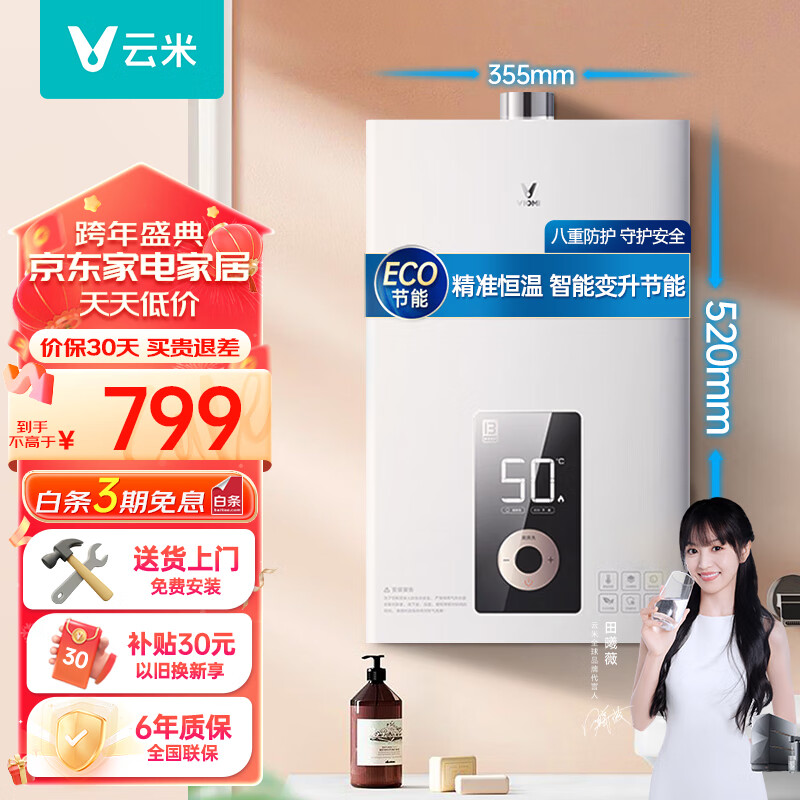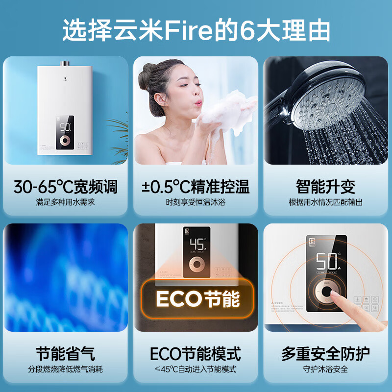 云米(VIOMI)燃气热水器家用Fire 13升智能 节能 双重防冻天然气JSQ25-VGW1310【节能变升恒温洗】价格:799.00元!
