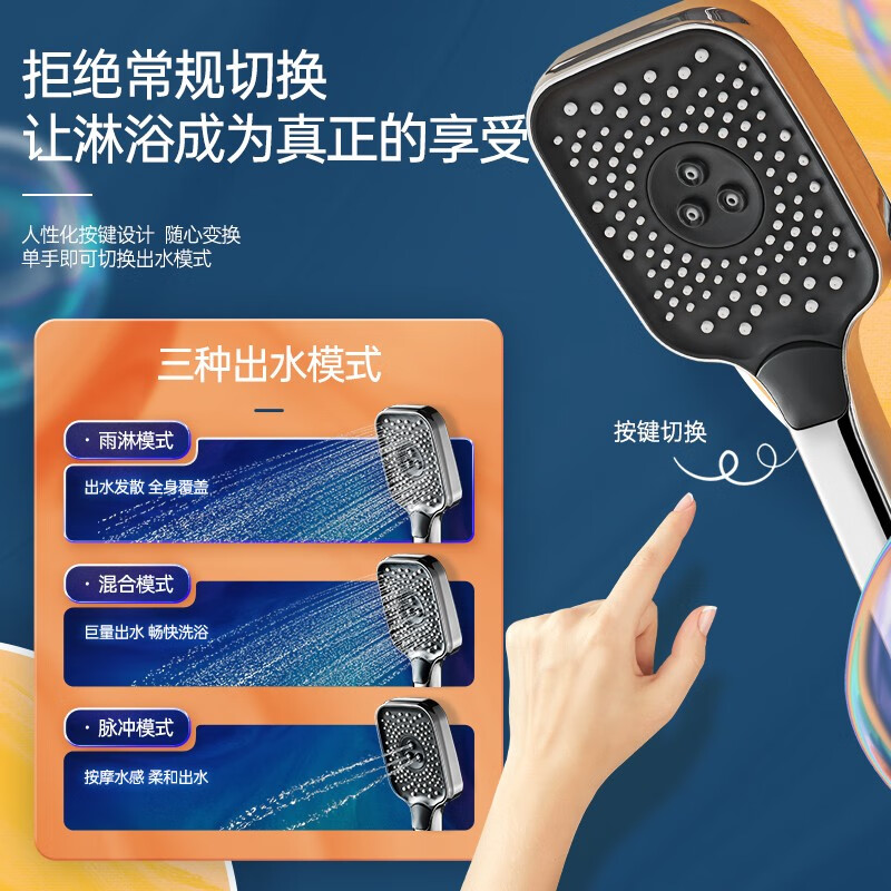 1、买了两个花洒,颜值很高,功能齐全,比同价位划算。性价比高!