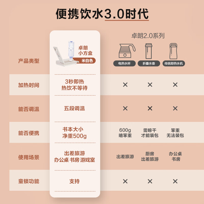 卓朗美国卓朗便携式烧水壶 台式桌面即热式饮水机小型速热电热水壶办公室旅行价格:299.00元!