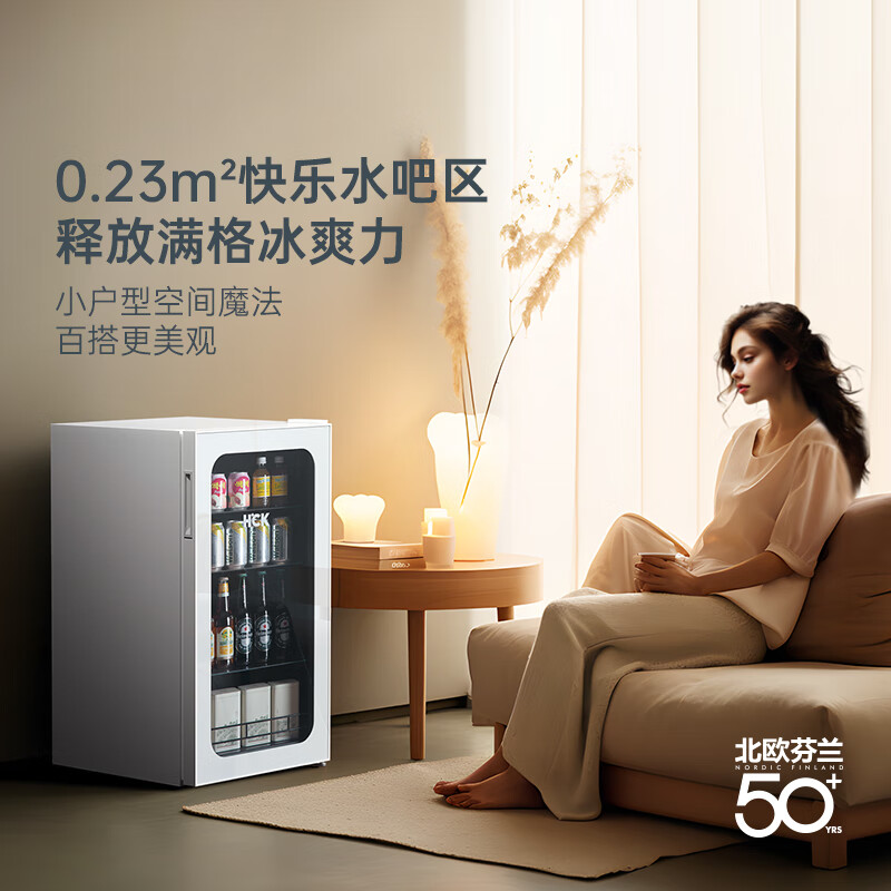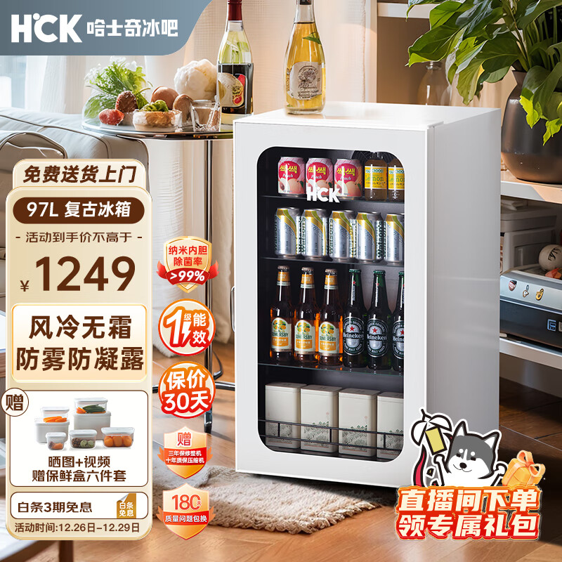 哈士奇复古客厅冰箱饮料酒饮冷藏柜冰吧家用小型饮料透明展示柜风冷无霜 SC-98FA-S价格:1149.00元!
