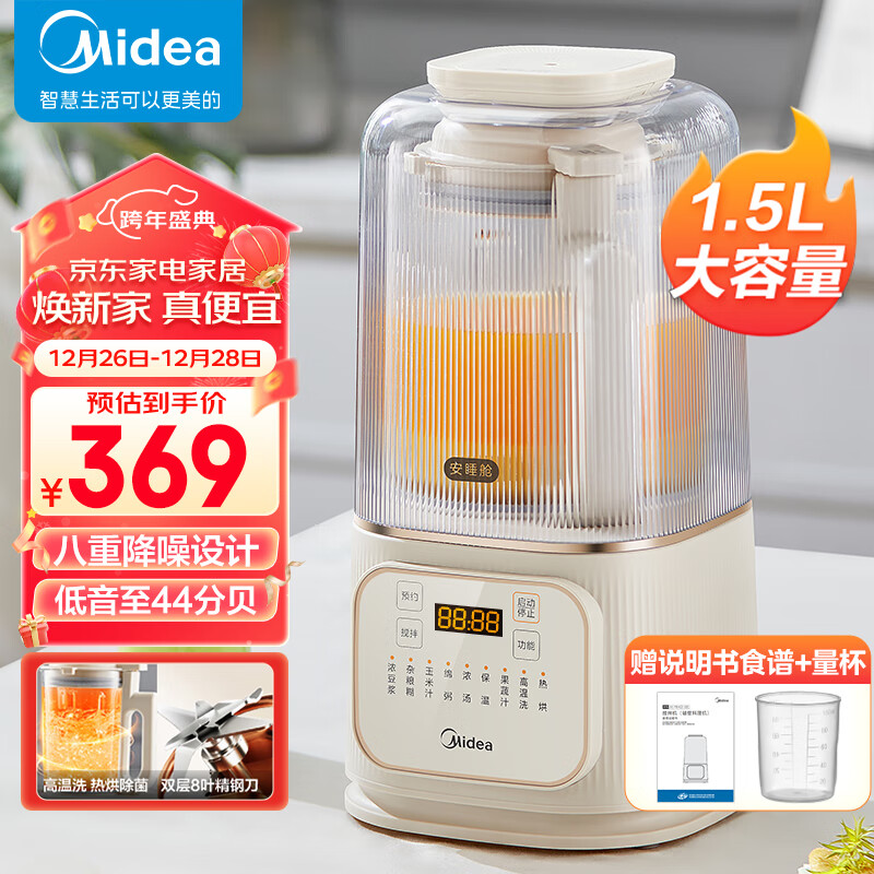美的(Midea)安睡Pro低音1.5升破壁机家用豆浆机柔音降噪设计榨汁料理辅食机MJ-PB4G3-555价格:499.00元!