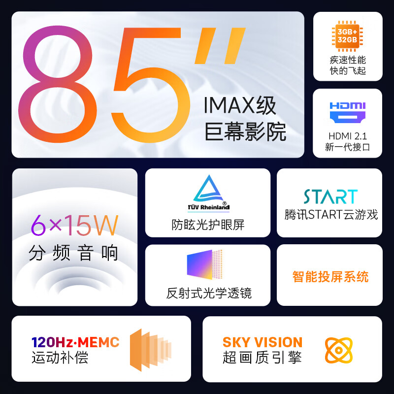 不得不说的是酷开85P31挺好的,外形外观:极窄边框,美观时尚屏幕音效:颜色鲜艳,看久了眼睛不累尺寸大小:大尺寸,观看效果杠杠的功能效果:一键投屏,方便快捷