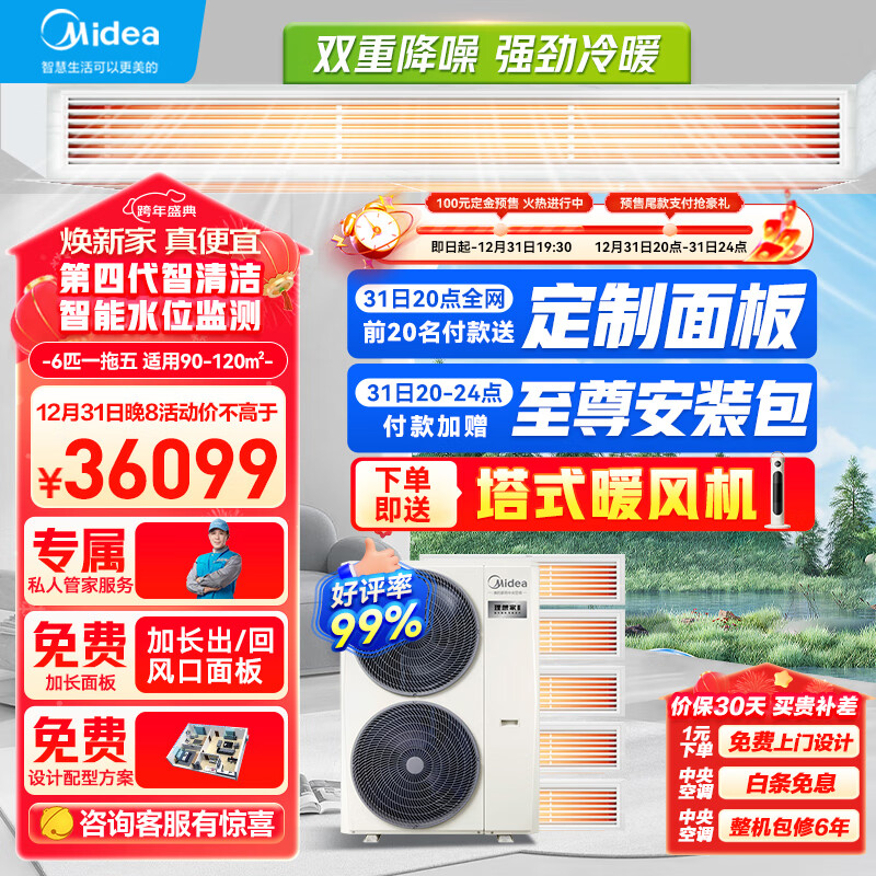 美的(Midea)中央空调一拖五风管机6匹小多联机理想家三代一级能效快速冷暖智能清洁MJV-140W-E01-LXⅢ价格:36198.00元!