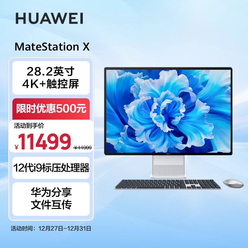华为一体机电脑MateStation X 2023款 28.2英寸4K+触控屏 i9-12900H/16G/512G SSD/WIFI6 Win11 皓月银价格:11499.00元!