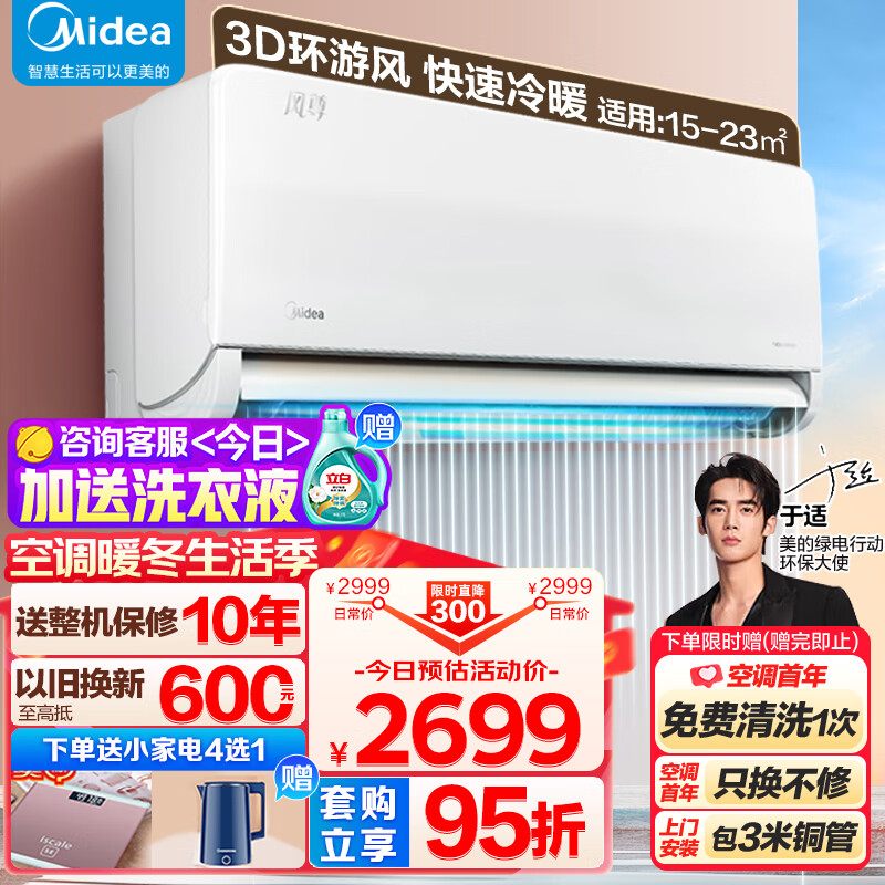 美的(Midea)风尊 大1匹 新一级能效变频冷暖 智能家电 家用卧室壁挂式空调挂机 KFR-26GW/N8MXC1时尚版价格:2749.00元!